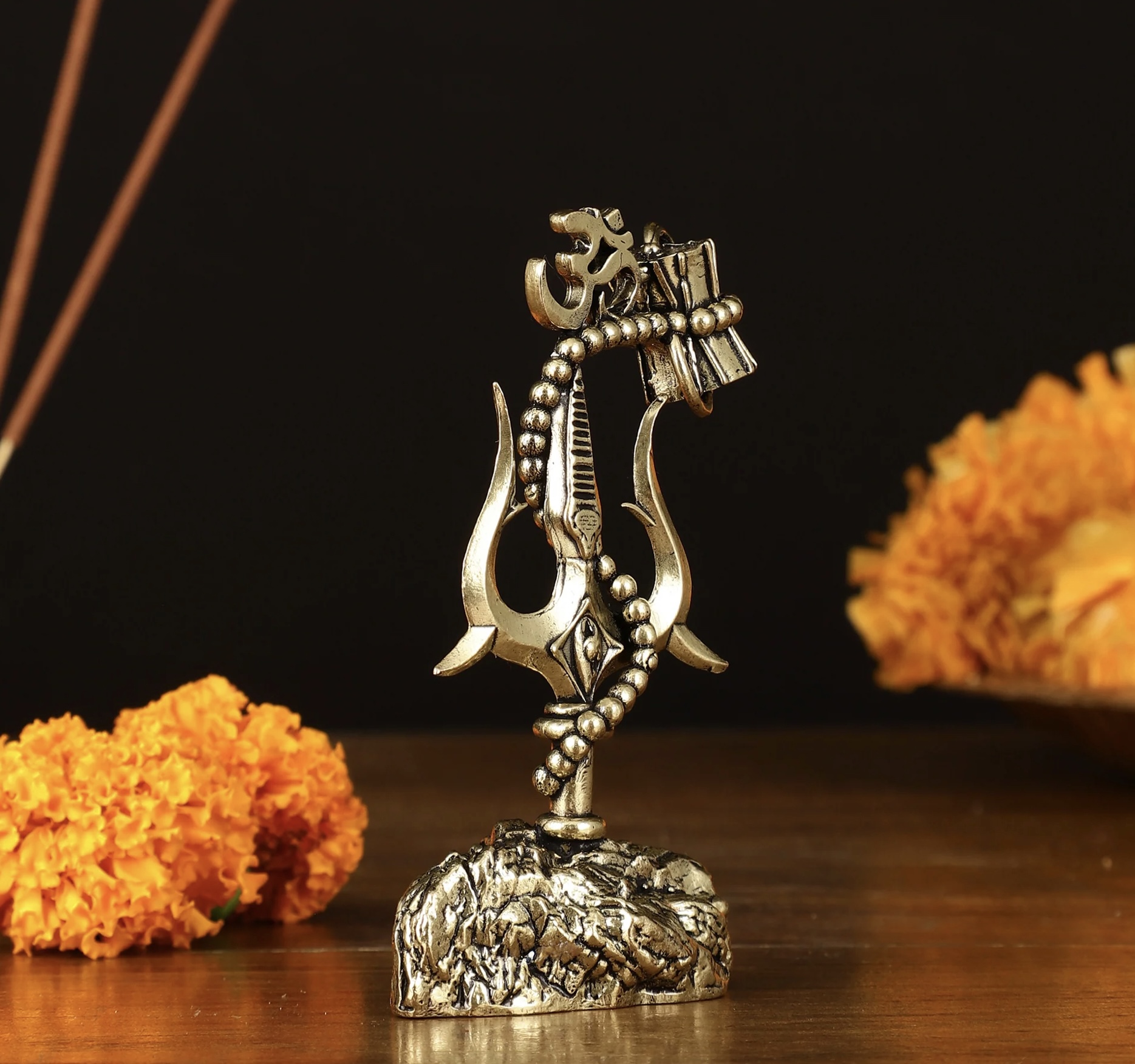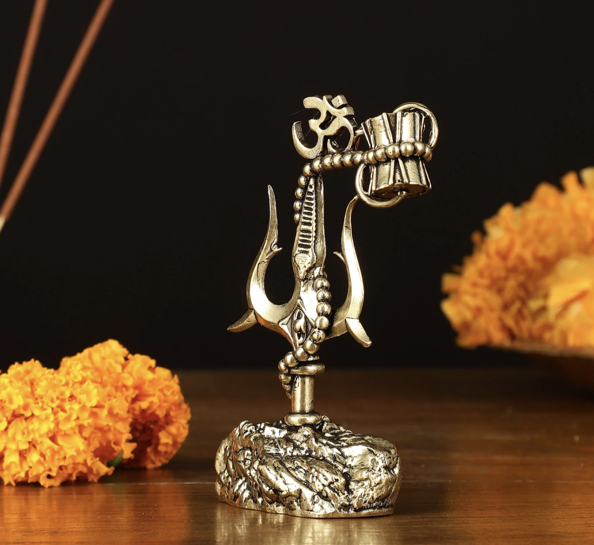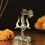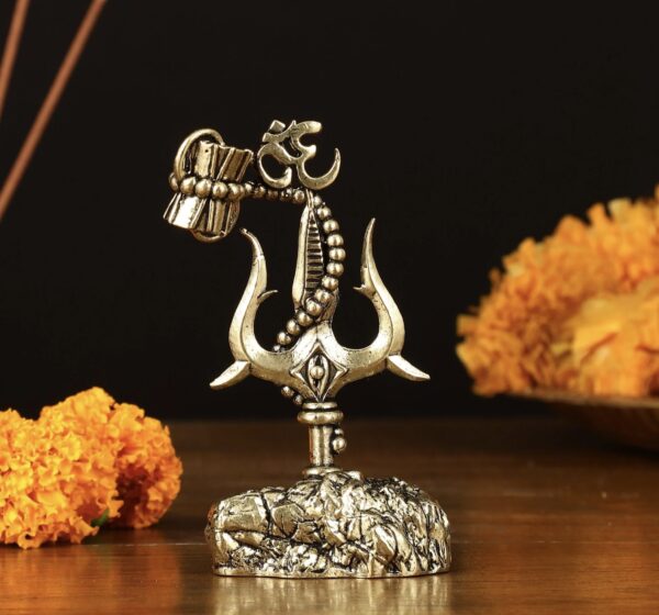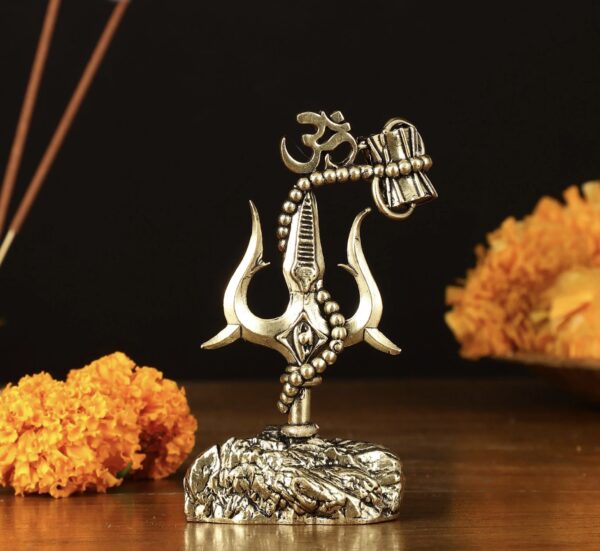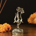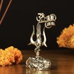 Adorn your car dashboard or find the perfect gift with our intricate brass Lord Shiva’ symbols – Trishul, Damru and rudraksh showpiece. Standing 2.5 inches tall, with dimensions of 2 inches in width and 1 inch in depth, this elegant piece weighs 86 grams. Ideal for adding a touch of divine grace to your vehicle or as a thoughtful spiritual gift.