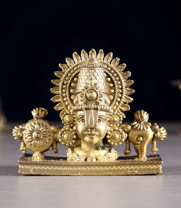 2” Pure Bronze Tirupati Balaji Face Bust | Panchaloha Idol with Lacquer Finish