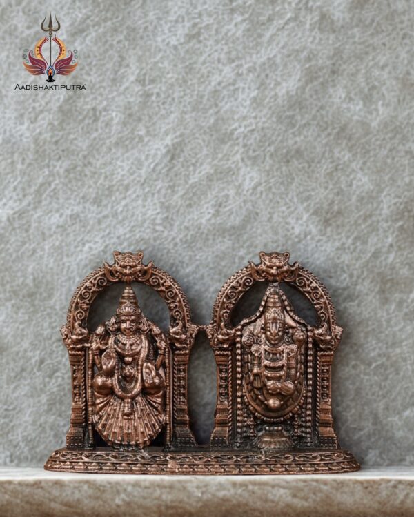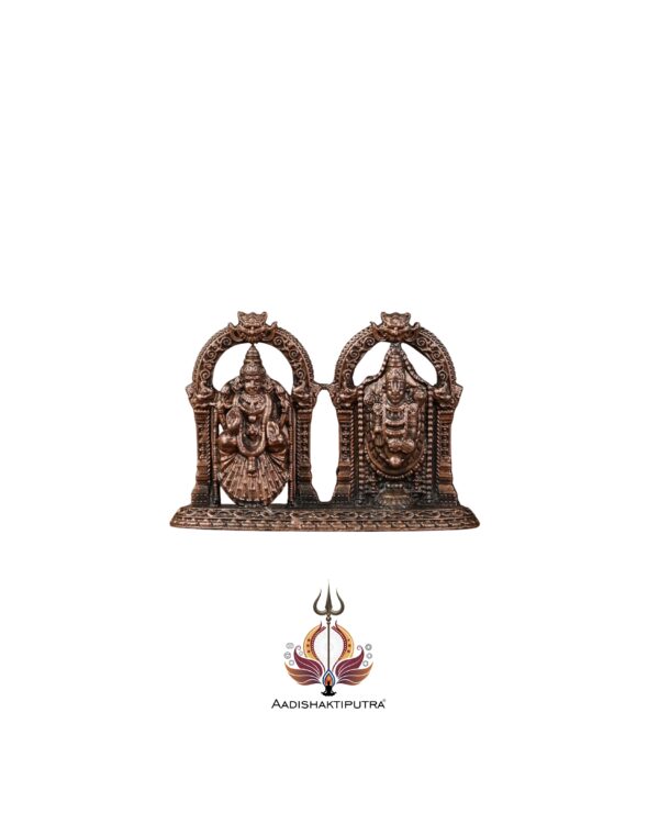 Experience divine grace with this pure copper idol featuring Tirupati Balaji alongside Padmavati Lakshmi. Standing 2 inches tall and weighing 0.064 kilograms, this meticulously crafted statue radiates spirituality and abundance. Invite the blessings of Lord Tirupati Balaji and Goddess Lakshmi into your home with this exquisite representation.