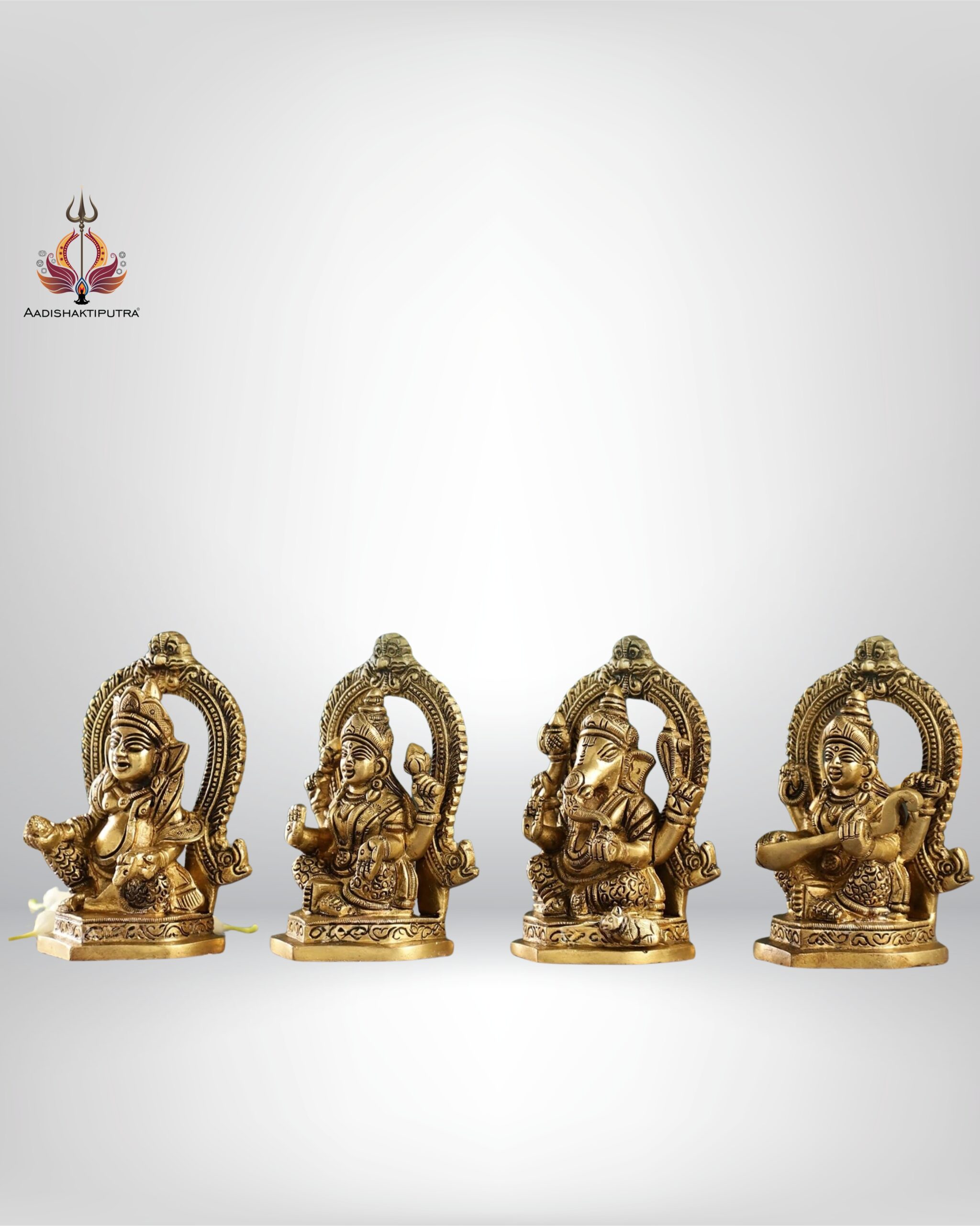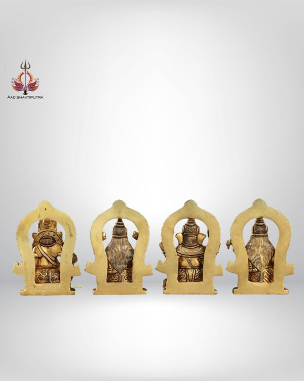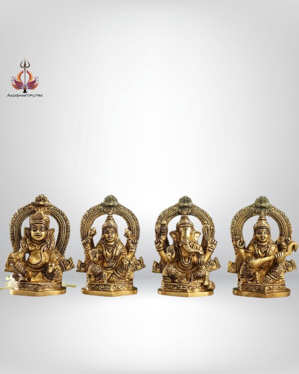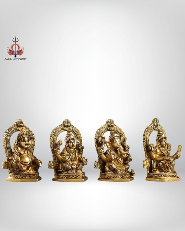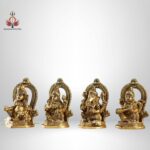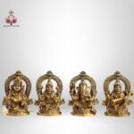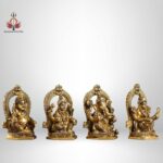 4.5” Superfine Brass Idols Set – Ganesha, Kubera, Lakshmi, Saraswati