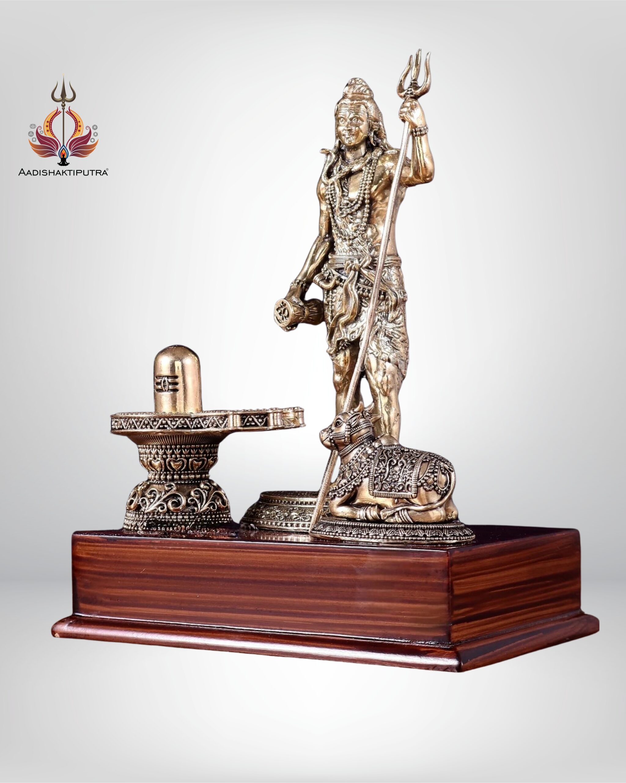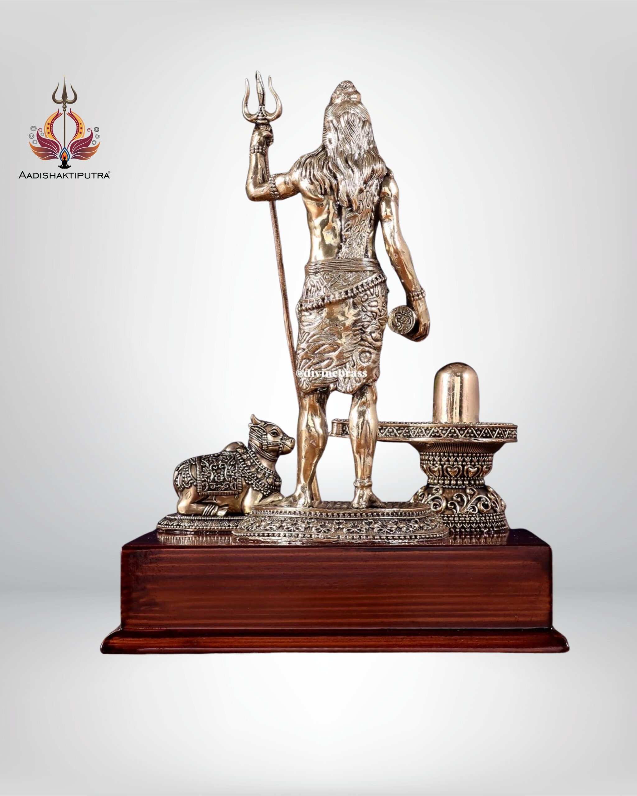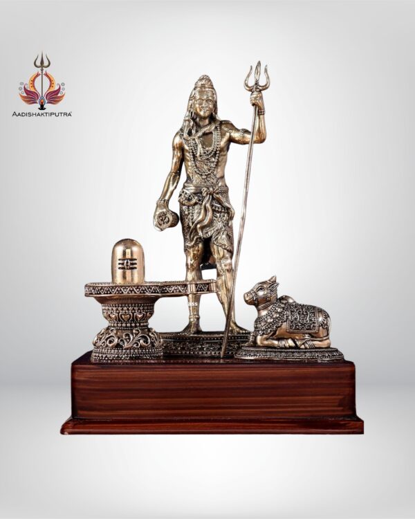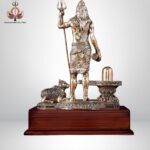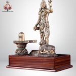 This superfine brass statue of Lord Shiva beautifully depicts Mahadev in a standing posture, accompanied by Nandi (his divine vahana) and the sacred Shivling. The idol embodies strength, devotion, and spiritual energy, making it an auspicious addition to any sacred or living space.