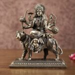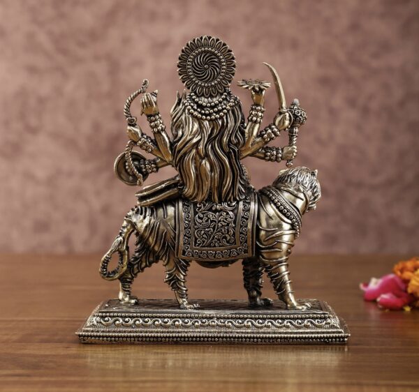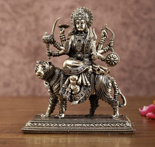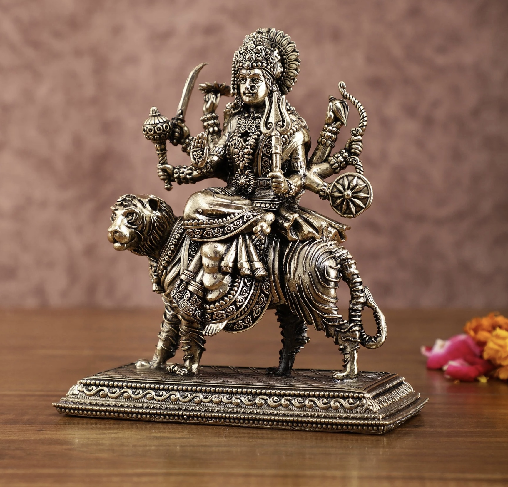 7” Brass Superfine Durga on Tiger Idol with Engraved Base