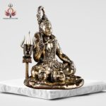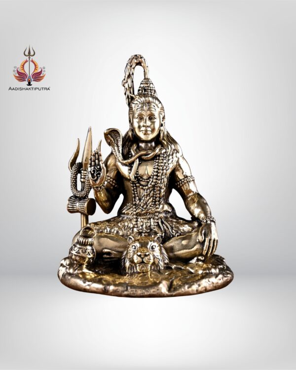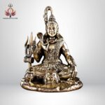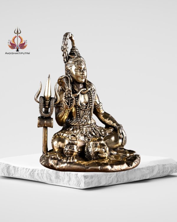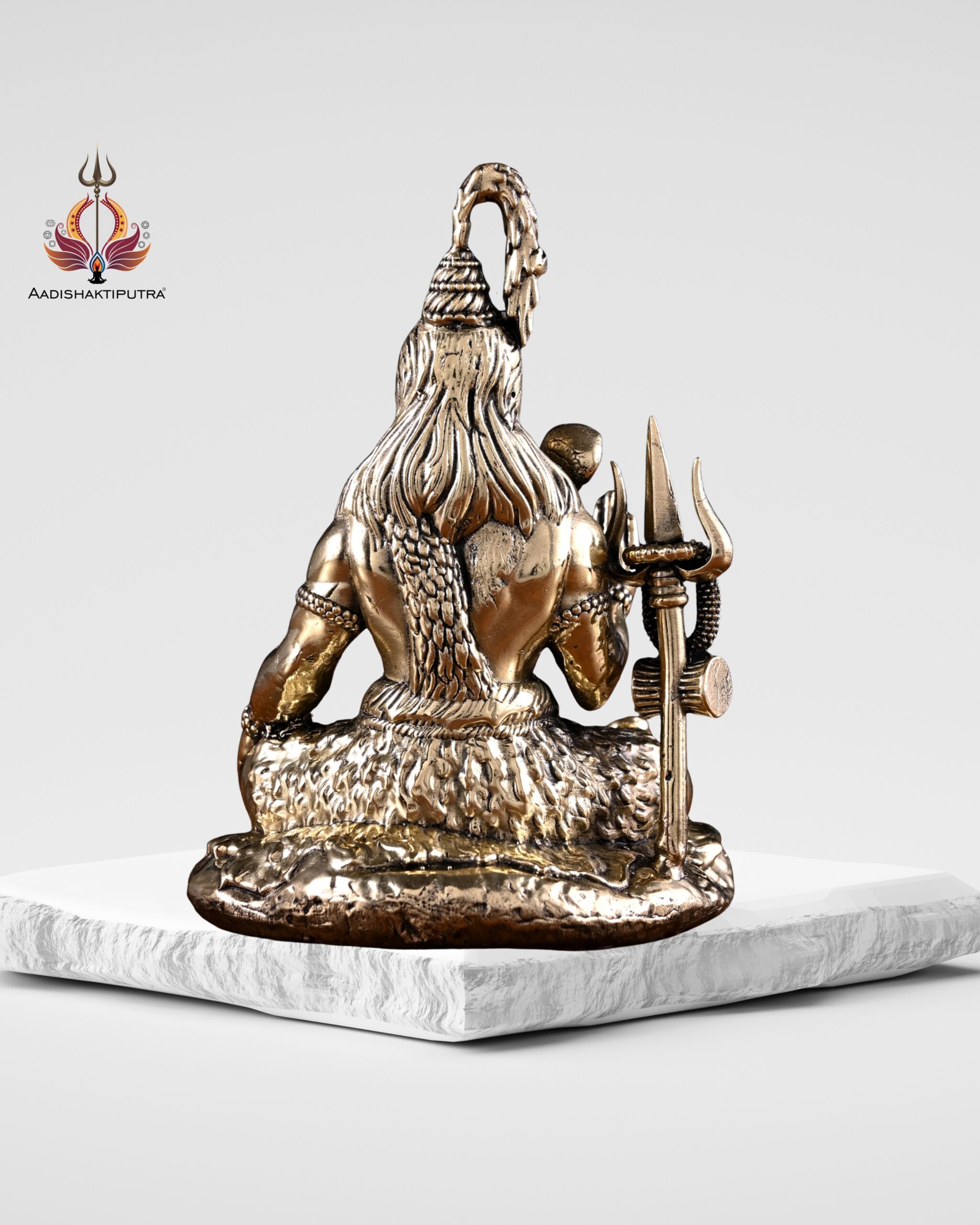 A finely handcrafted idol of Lord Shiva seated in a serene blessing pose, sculpted in pure brass with a traditional superfine finish. With intricate detailing and a calm, divine expression, this compact murti radiates powerful spiritual energy.